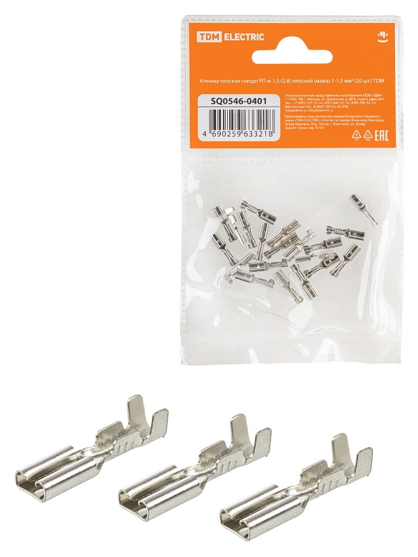 Клемма плоская гнездо РП-м 1,5-(2,8) плоский (мама) 1-1,5 мм? (20шт) TDM | код SQ0546-0401 | TDM