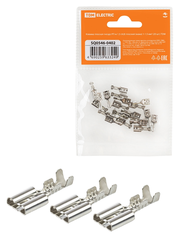 Клемма плоская гнездо РП-м 1,5-(4,8) плоский (мама) 1-1,5 мм? (20шт) TDM | код SQ0546-0402 | TDM