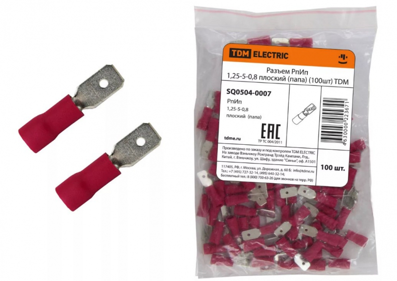 Разъем РпИп 1,25-5-0,8 плоский (папа) (100шт) TDM | код SQ0504-0007| TDM