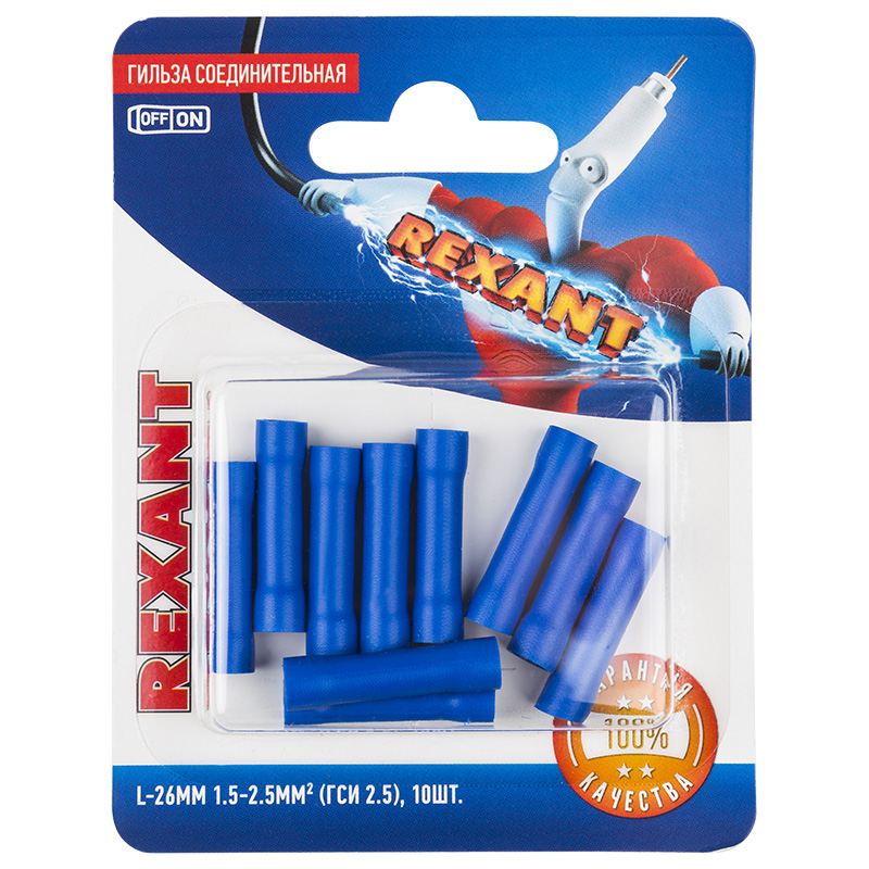 Соединительная гильза изолированная L-26 мм 1.5-2.5 мм кв (ГСИ 2.5/ГСИ 1,5-2,5) синяя, в упак. 10 шт. REXANT | код 06-0431-A | REXANT