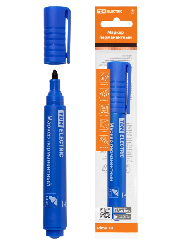 Маркер перманентный 1-3 мм, синий (пакет) круглый наконечник TDM | код SQ0594-0124 | TDM