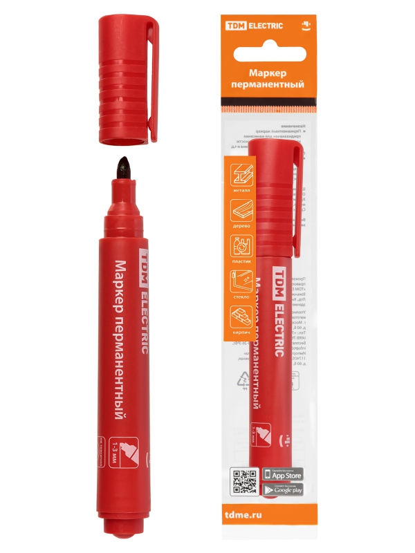 Маркер перманентный 1-3 мм, красный (пакет) круглый наконечник TDM | код SQ0594-0123 | TDM