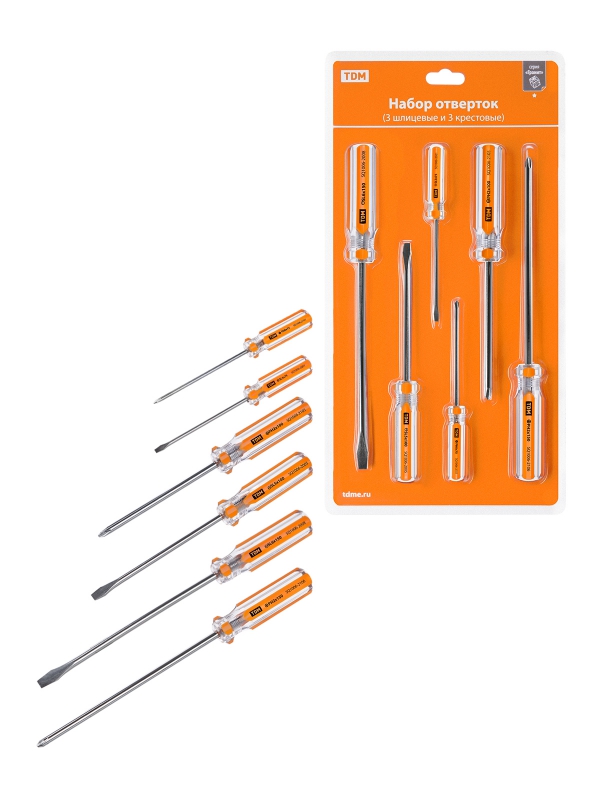 Набор отверток 6 шт.: SL:3x75 5x100 6x150, PH:0х75 2x100 2x150 (блистер), CS Гранит TDM | код SQ1013-0102 | TDM