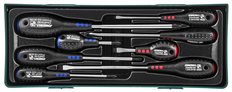 D04PP08SP Набор отверток стержневых FULL STAR в ложементе, 8 предметов | код D04PP08SP | JONNESWAY