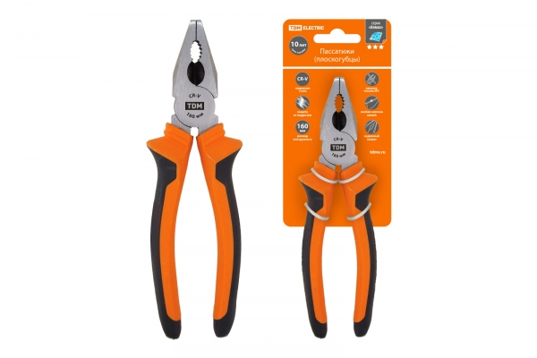 Пассатижи (плоскогубцы), с двухкомпонентными рукоятками, CR-V сталь 160 мм, серия Алмаз TDM | код SQ1010-0201| TDM