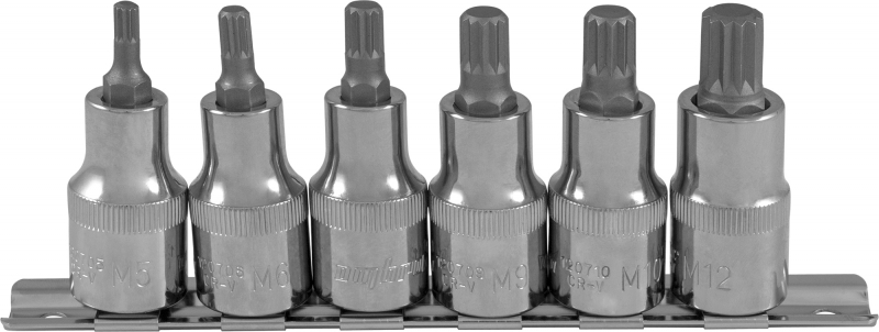 912706 Набор насадок торцевых 1/2DR с вставками-битами SPLINE на держателе, M5-M12, 6 предметов | код 912706 | Ombra