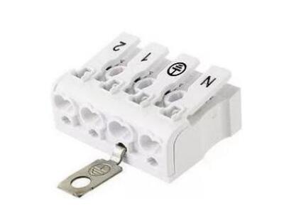 Клемма пружинная соединительная КСПнз4-2L+N+PE. 16A. с монтажной ножкой и заземлением под винт HLT | код 081-32-029 | HLT