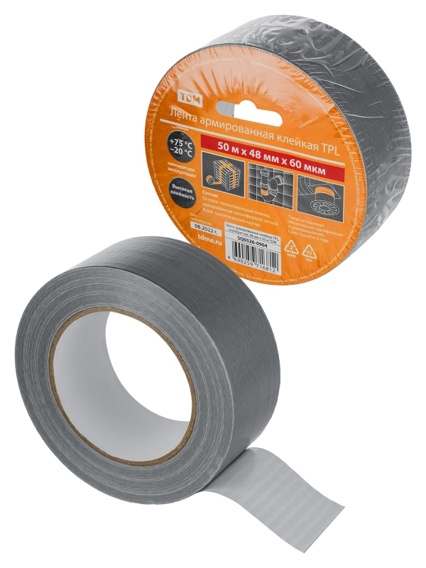 Лента армированная клейкая TPL, серебристая, 48 мм х 50 м TDM | код SQ0526-0904 | TDM