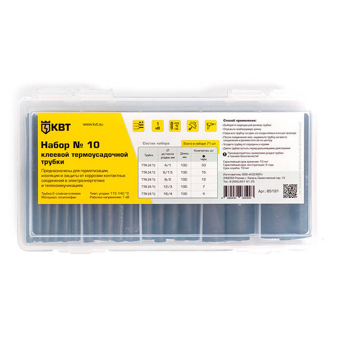 Набор клеевой термоусадочной трубки №10 (КВТ) | код 85191 | КВТ