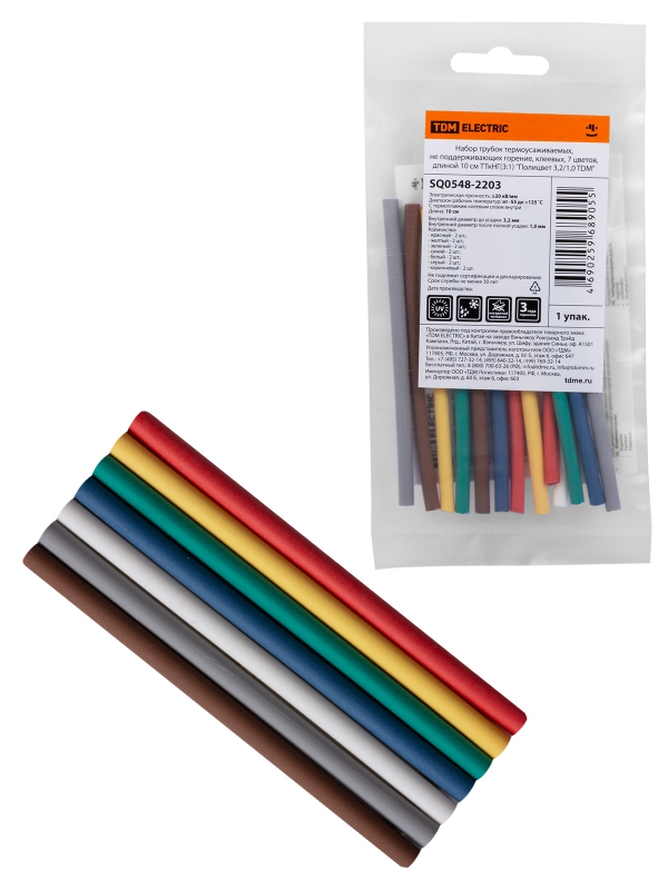 Набор трубок термоусаживаемых, клеевых ТТкНГ(3:1) Полицвет 3,2/1,0 TDM | код SQ0548-2203 | TDM
