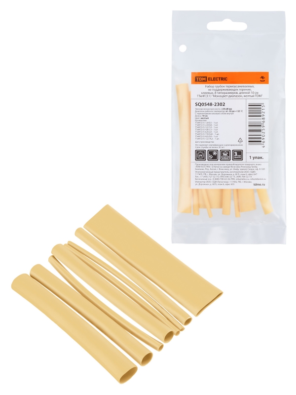 Набор трубок термоусаживаемых, клеевых Моноцвет-диапазон, желтый TDM | код SQ0548-2302 | TDM