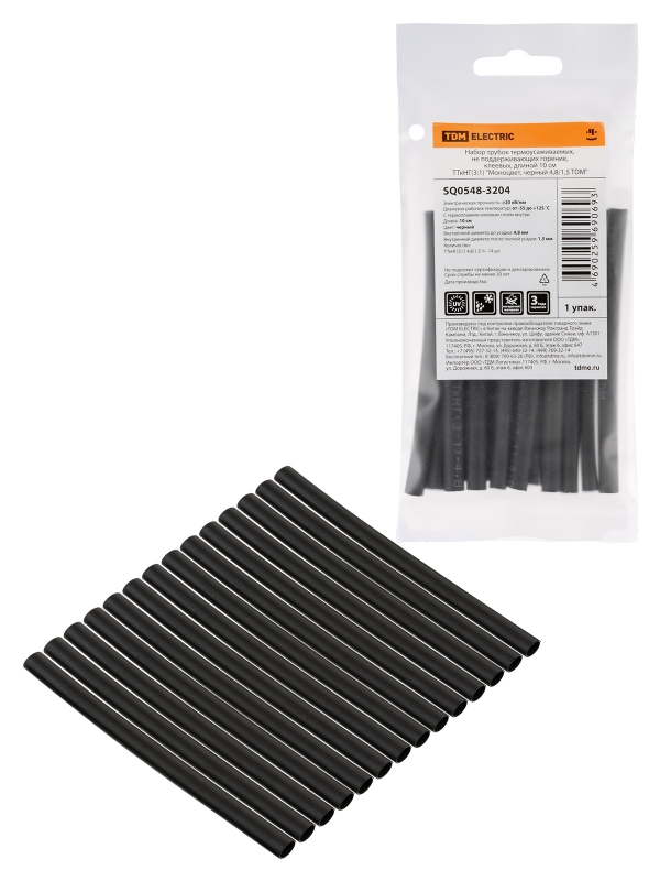 Набор трубок термоусаживаемых, клеевых Моноцвет, черный 4,8/1,5 TDM | код SQ0548-3204 | TDM