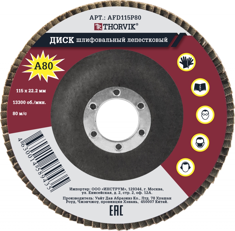 AFD115P80 Диск шлифовальный лепестковый торцевой, 115х22.2 мм, Р80 | код AFD115P80 | Thorvik