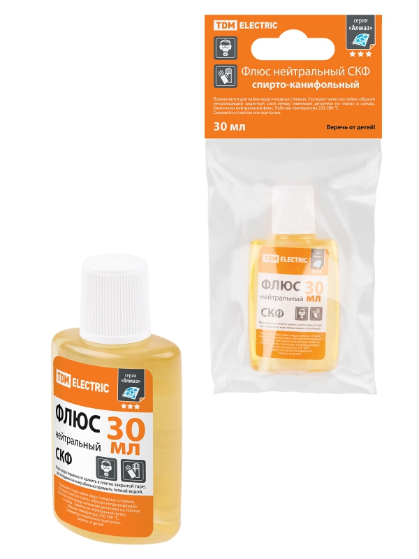 Флюс нейтральный СКФ, спирто-канифольный, 30 мл, дозатор, инд. упаковка, серия Алмаз TDM | код SQ1025-1506 | TDM