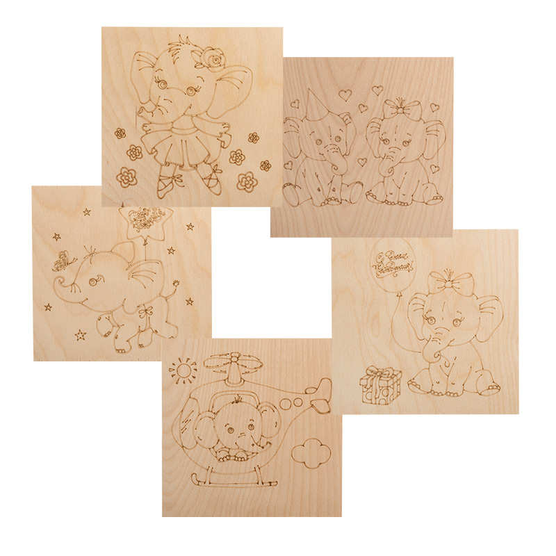 Доски для выжигания REXANT, Слонята , 150х150 мм, 5 шт., пакет | код 12-0932 | REXANT