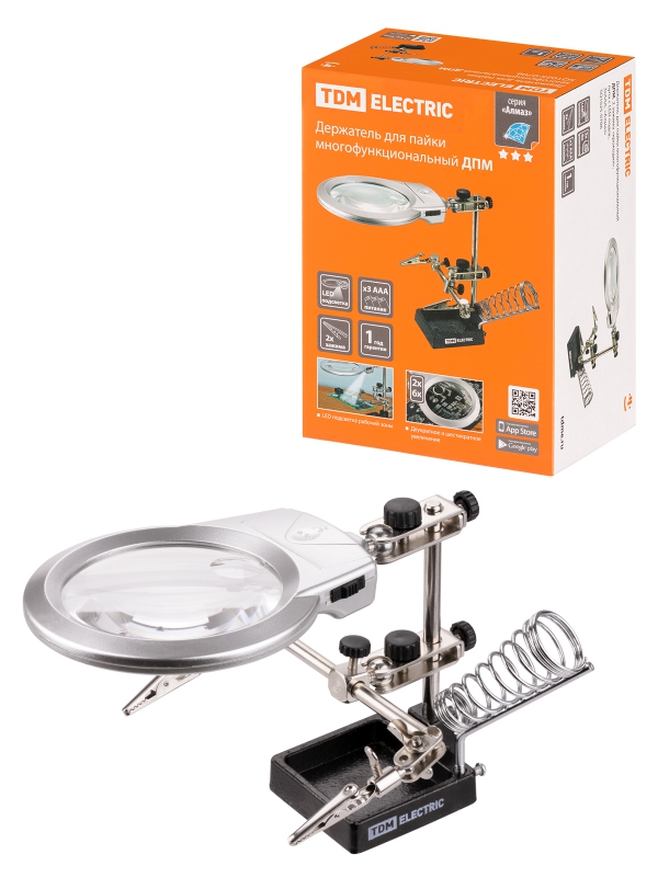Держатель для пайки многофункциональный ДПМ, 2 зажима крокодил, лупа с LED подсв., 3хААА, Алмаз | код SQ1025-0706 | TDM