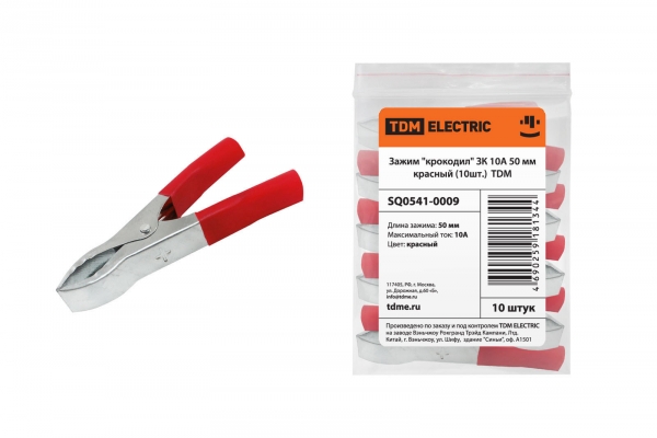 Зажим крокодил ЗК 10А 50мм красный (10шт) TDM | код SQ0541-0009 | TDM