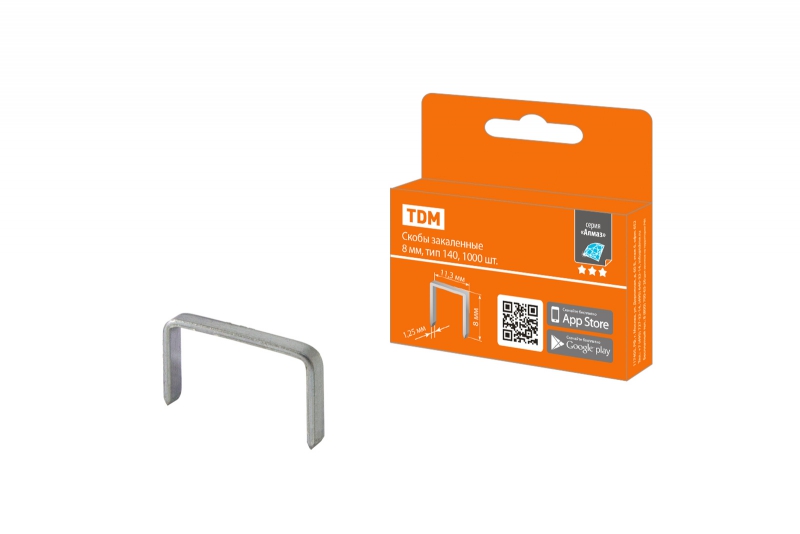 Скобы закаленные 8 мм, тип 140, 1000 шт, Алмаз TDM | код SQ1038-0201 | TDM