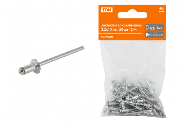 Заклепки алюминиевые 3.2х10 мм, 50 шт TDM | код SQ1037-0103 | TDM