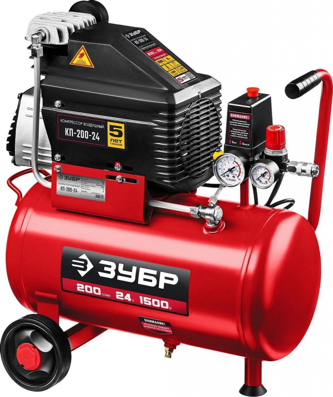 Компрессор поршневой Зубр КП-200-24 Н6 безмасляный 200л/мин 24л 1500Вт красный | код 1407276 | ЗУБР