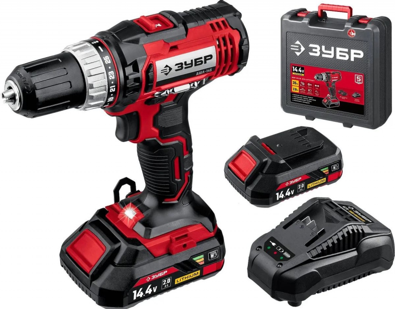 Дрель-шуруповерт Зубр ДШЛ-145-22 аккум. патрон:быстрозажимной (кейс в комплекте) | код 1612658 | ЗУБР