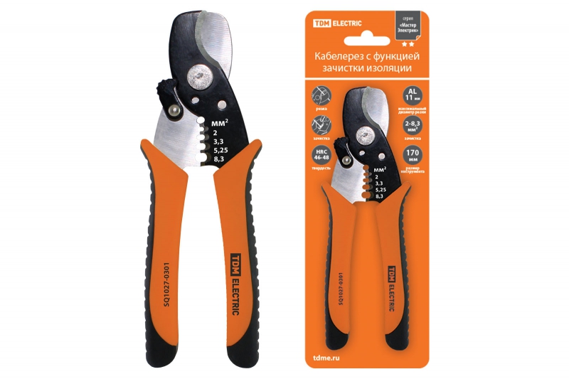 Кабелерез (Al до ?11 мм) с функц. зачистки изол., CR-V сталь, 170 мм, серия МастерЭлектрик TDM | код SQ1027-0301 | TDM