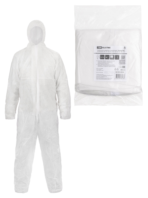Комбинезон защитный одноразовый Каспер Р40, на молнии, 40 г/м2, белый, разм. 56-58/182-188, TDM | код SQ1016-0324 | TDM