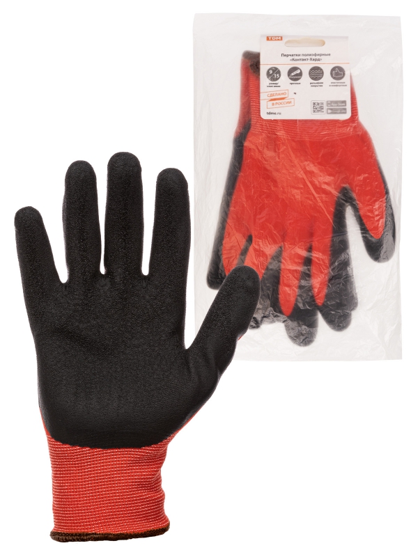 Перчатки полиэфирные Контакт-Хард, рельефное латексное покрытие,9, 15 кл., 59-61 г, 1 пара, TDM | код SQ1016-0320 | TDM