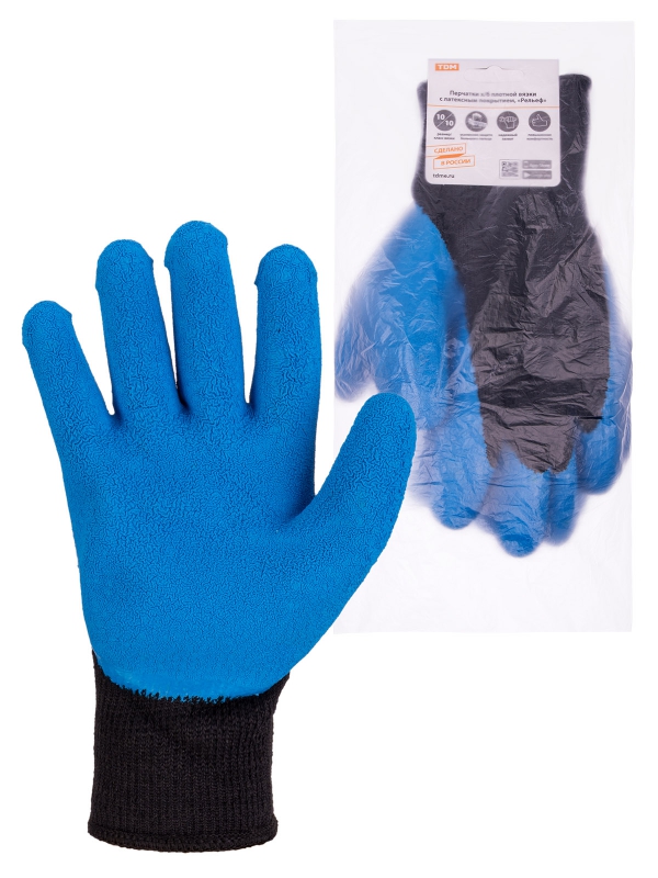 Перчатки х/б плотной вязки с латексным покрытием, Рельеф, черные, 10, 10 кл., 125 г, 1 пара, TDM | код SQ1016-0214 | TDM