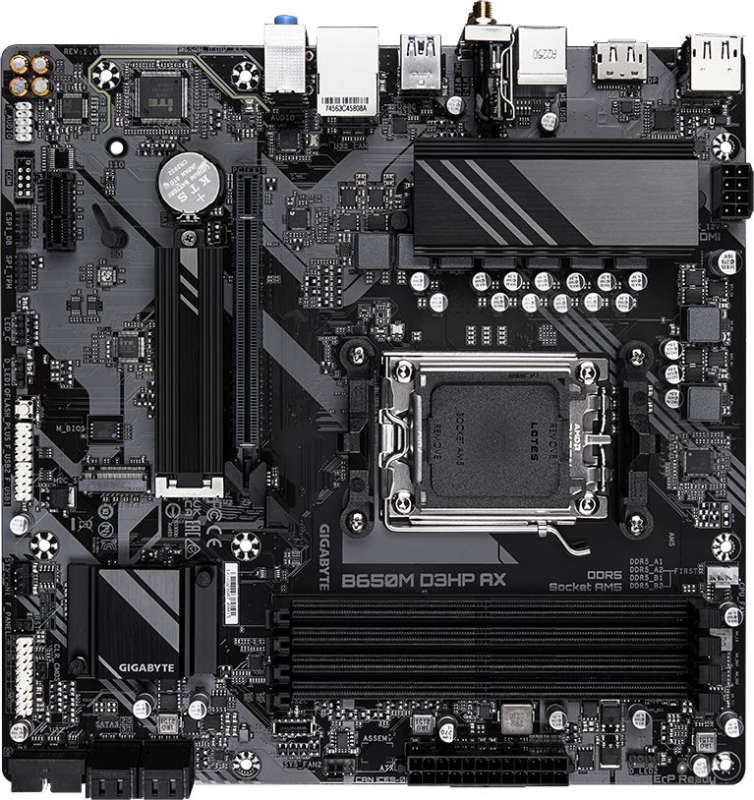 Материнская плата Gigabyte B650M D3HP AX SocketAM5 AMD B650 4xDDR5 mATX AC`97 8ch(7.1) 2.5Gg RAID+HDMI+DP | код 2001037 | GIGABYTE