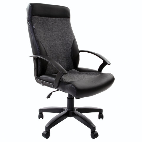 Кресло офисное BRABIX Trust EX-535, экокожа черная, ткань серая | код 531383 | BRABIX