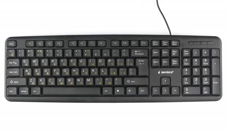 Клавиатура Gembird KB-8320U-Ru_Lat-BL, черный, USB, кнопка переключения RU/LAT,104 клавиши, кабель 1,5м | код KB-8320U-Ru_Lat-BL | Gembird