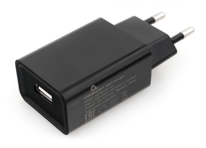 Адаптер питания Cablexpert MP3A-PC-25 100/220V - 5V USB 1 порт, 2A, черный | код MP3A-PC-25 | Cablexpert