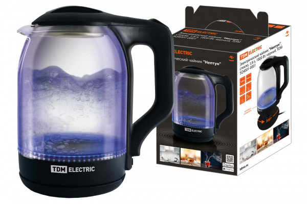Электрический чайник Нептун, стекло, 1,8 л, 1800 Вт, черный, TDM | код SQ4001-0001 | TDM