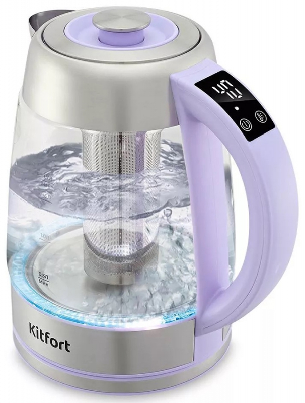 Чайник электрический Kitfort КТ-6624 1.7л. 2200Вт лавандовый/нержавеющая сталь корпус: стекло/металл/пластик | код 1991960 | KITFORT