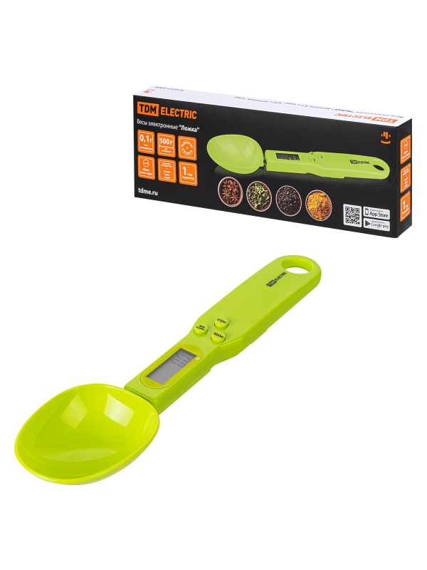 Весы электронные Ложка, деление 0,1 г, макс. 500 г, зеленый, TDM | код SQ4025-0006 | TDM