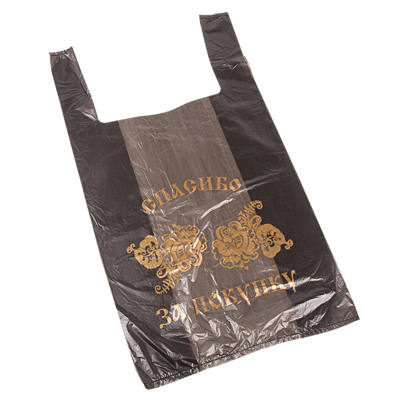 Пакет майка ПНД 28+16*50, 12мкм Спасибо (100шт./уп) черная | код 61-0101-1 | REXANT