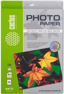 Фотобумага Cactus CS-MA423050 A4/230г/м2/50л./белый матовое для струйной печати | код 805855 | CACTUS