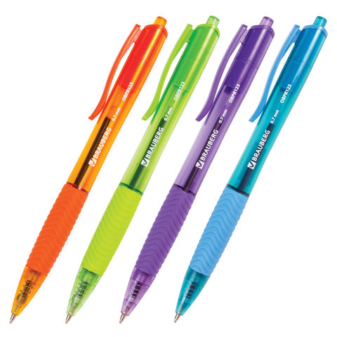 Ручка шариковая масляная автоматическая с грипом BRAUBERG Fruity RD, СИНЯЯ, корпус ассорти, узел 0,7 мм, линия письма 0,35 мм, 142700 | код 142700 | BRAUBERG