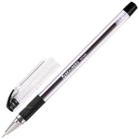 Ручка шариковая масляная с грипом BRAUBERG Max-Oil, ЧЕРНАЯ, игольчатый узел 0,7 мм, линия письма 0,35 мм, 142142 | код 142142 | BRAUBERG