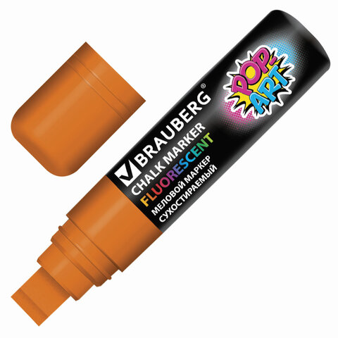 Маркер меловой BRAUBERG POP-ART, сухостираемый, для гладких поверхностей, 15мм, ОРАНЖЕВЫЙ, 151541 | код 151541 | BRAUBERG