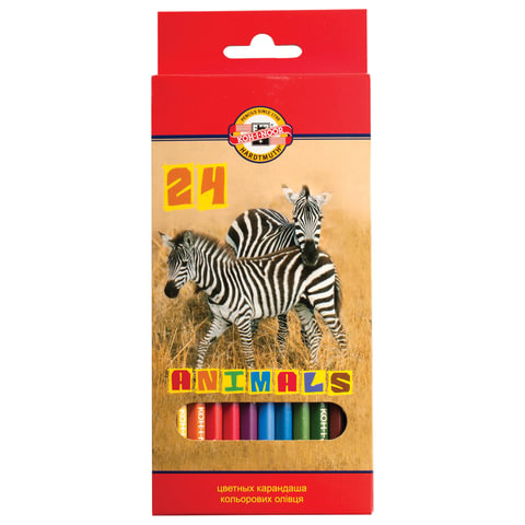 Карандаши цветные KOH-I-NOOR Animals , 24 цвета, грифель 2,8 мм, заточенные, европодвес, 3554/24, 3554024008KSRU | код 180317 | KOH-I-NOOR