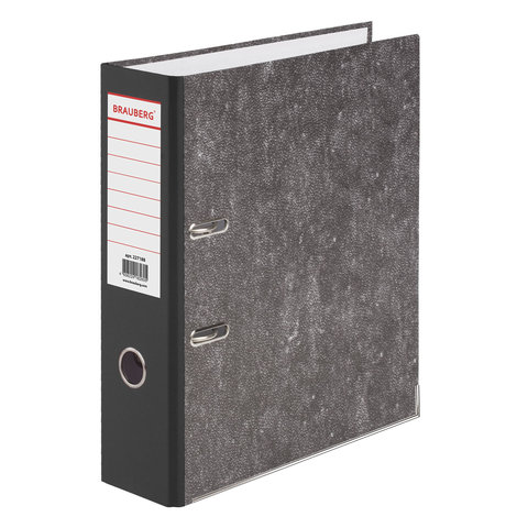 Папка-регистратор BRAUBERG, усиленный корешок, мраморное покрытие, 80 мм, с уголком, черная, 227188 | код 227188 | BRAUBERG