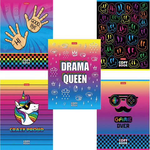 Тетрадь А5, 48 л., HATBER, скоба, клетка, обложка картон, CrazyColor (5 видов в спайке), 48Т5В1 | код 113816 | HATBER