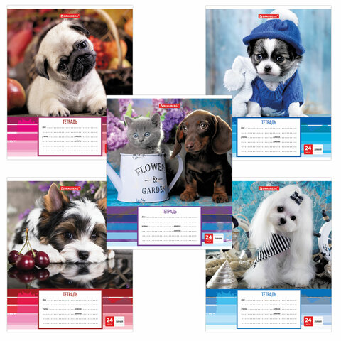 Тетрадь 24 л. BRAUBERG линия, обложка картон, ЗАБАВНЫЕ ЩЕНКИ , 403585 | код 403585 | BRAUBERG