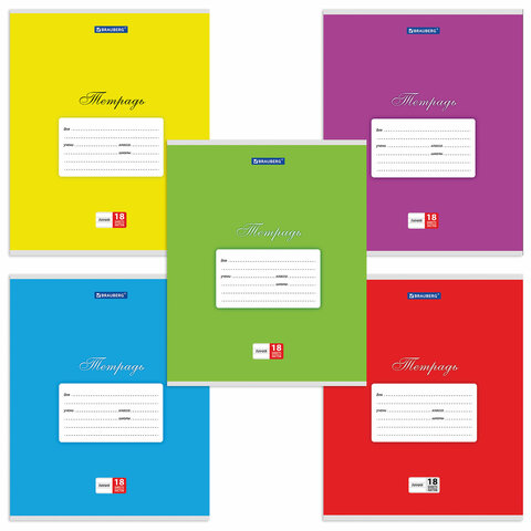 Тетрадь 18 л. BRAUBERG КЛАССИКА, линия, обложка картон, АССОРТИ (5 видов), 401992 | код 401992 | BRAUBERG