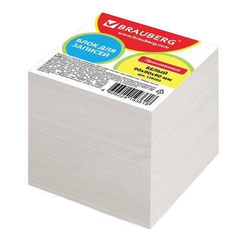 Блок для записей BRAUBERG проклеенный, куб 9х9х9 см, белый, белизна 95-98%, 129203 | код 129203 | BRAUBERG
