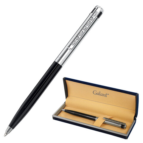 Ручка подарочная шариковая GALANT ACTUS , корпус серебристый с черным, детали хром, узел 0,7 мм, синяя | код 143518 | GALANT