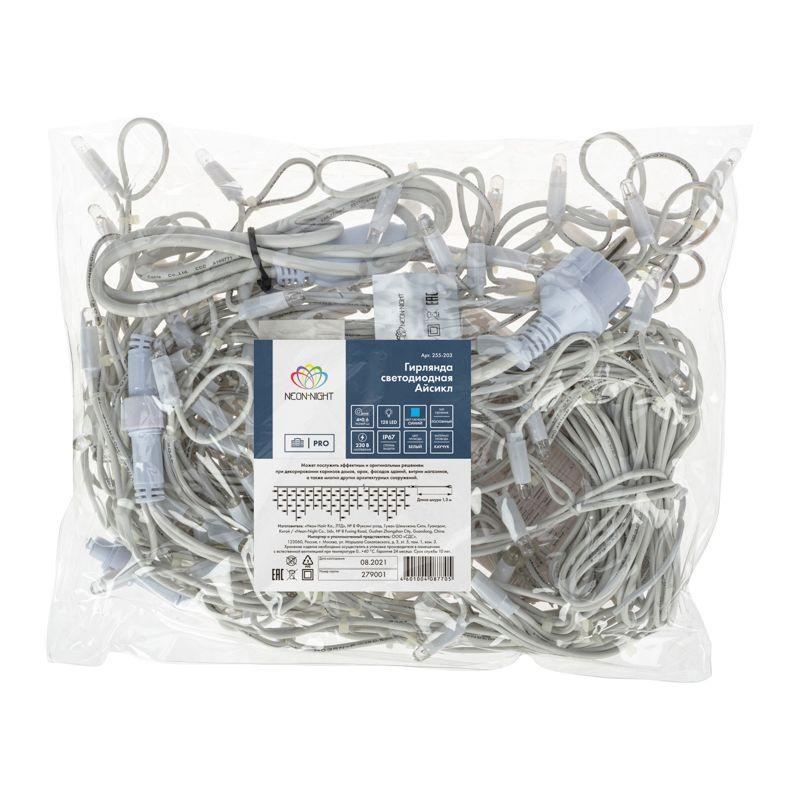 Гирлянда светодиодная "Айсикл" (бахрома) 4х0.6м 128LED син. 10Вт 230В IP67 провод каучук бел. Neon-Night 255-203