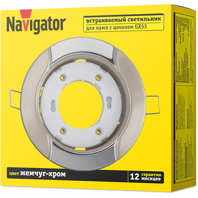 Светильник 93 052 NGX-R8-002-GX53 Волна жемчуж./хром. Navigator 93052
